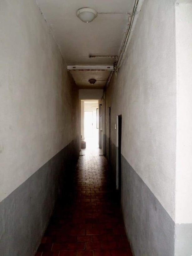 The block of flats in Gansbaai is very old, weirdly build with a courtyard. You had to go through a long passage with only one light fitting at the end. It had steep steps at the right, at the entrance, going to a second floor apartment. In the middle of the passage was a open spandrel space, big enough to hide in.